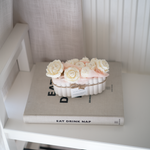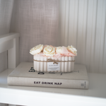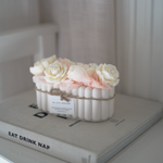 Imaginez un jardin secret où les roses s'épanouissent dans une harmonie de blanc et de rose poudré, délicatement posées dans une jardinière en Jesmonite aux courbes douces. MA JOLIE JARDINIÈRE capture cette beauté intemporelle et champêtre, comme un instant suspendu dans un jardin romantique.